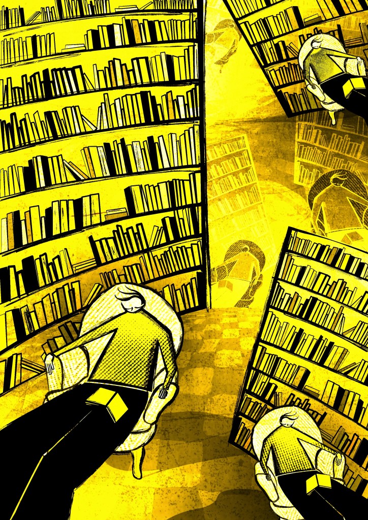 Lo scrittore era seduto sulla sua poltrona. Aveva gli occhi chiusi e la testa reclinata sullo schienale. Il mento era stretto sul collo e formava un rigonfiamento sotto il mento puntellato dai peli della barba bianca. Dietro di lui lo scaffale della libreria alta fino al soffitto, a coprire tutta la parete. I volumi, i tomi e le più piccole edizioni tascabili sembravano disposte senza criterio, eppure lui, anche così, con gli occhi chiusi e con il volto rivolto nella direzione opposta, avrebbe potuto trovare il libro che aveva in mente, proprio dietro al tomo sulla storia delle violenze della Chiesa, e aprirlo alla pagina esatta che gli sarebbe servita per la scena del suo romanzo ambientata in un monastero di Brema nel 1500. Non c’era libro in quella libreria che non fosse anche contenuto nella sua mente, nella stessa posizione e dietro gli stessi tomi. Si poteva forse dire che quella stessa biblioteca esistesse così com’era anche nella sua mente, che in quel momento stava inquadrando sé stesso seduto con la testa reclinata su una poltrona, che era la stessa su cui era seduto realmente. Anche quello scrittore che era sé stesso e che era presente nella sua mente e sedeva davanti alla stessa biblioteca, poteva sentire lo stesso prurito alla barba che provava lui? Pensò che se anche quell’altro scrittore era in grado di sentire quel prurito e di grattarsi nello stesso punto, proprio lì dove il mento si univa al gozzo, perché non poteva essere considerato reale quanto lui? Forse egli stesso era frutto del pensiero di un altro sé stesso di una sfera più ampia che stava effettuando le stesse considerazioni. Forse il gioco non aveva una fine in nessuna delle due direzioni, né in senso più ampio né più stretto, e non aveva senso perché se lui era parte di una serie infinita poteva benissimo non esistere affatto. Poi a un tratto il suo ragionamento si fermò, quel circolo infinito si bloccò. Lui non poteva vedere sé stesso dall’esterno così come nella sua mente vedeva l’altro scrittore identico a sé sulla sua stessa poltrona adesso. Allora forse l’altro non era realmente identico a sé stesso, ma era come lui si immaginava visto dagli altri, dall’esterno, e quindi era qualcuno di molto simile a lui, con le stesse fattezze, la stessa barba, lo stesso prurito, ma non era lui e quest’altro scrittore immaginava a sua volta sé stesso in modo diverso da come lui ora lo stava guardando. Immaginò che queste piccole differenze partivano da un essere che era quasi un suo doppio e, di piccola difformità in piccola difformità, proiettate verso l’infinito, andavano a coprire tutte le combinazioni delle possibilità degli esseri umani. In quelle proiezioni infinite erano compresi tutti gli uomini possibili e tutte le biblioteche possibili, in quel rimando senza fine erano racchiusi tutti gli uomini vissuti e tutti quelli che sarebbero mai vissuti in futuro e anche quelli che sarebbero potuti esistere in potenza e che invece sarebbero rimasti soltanto delle possibilità. Fu confortato quando capì che tra tutti quei sé stessi c’era davvero anche la sua copia esatta, il vero sé stesso, non quello che vedevano gli altri, non quello che lui vedeva, ma quello che era davvero, oggettivamente, il suo vero io. A questo pensiero fu così rinfrancato che aprì gli occhi e tutto il mondo scomparve.